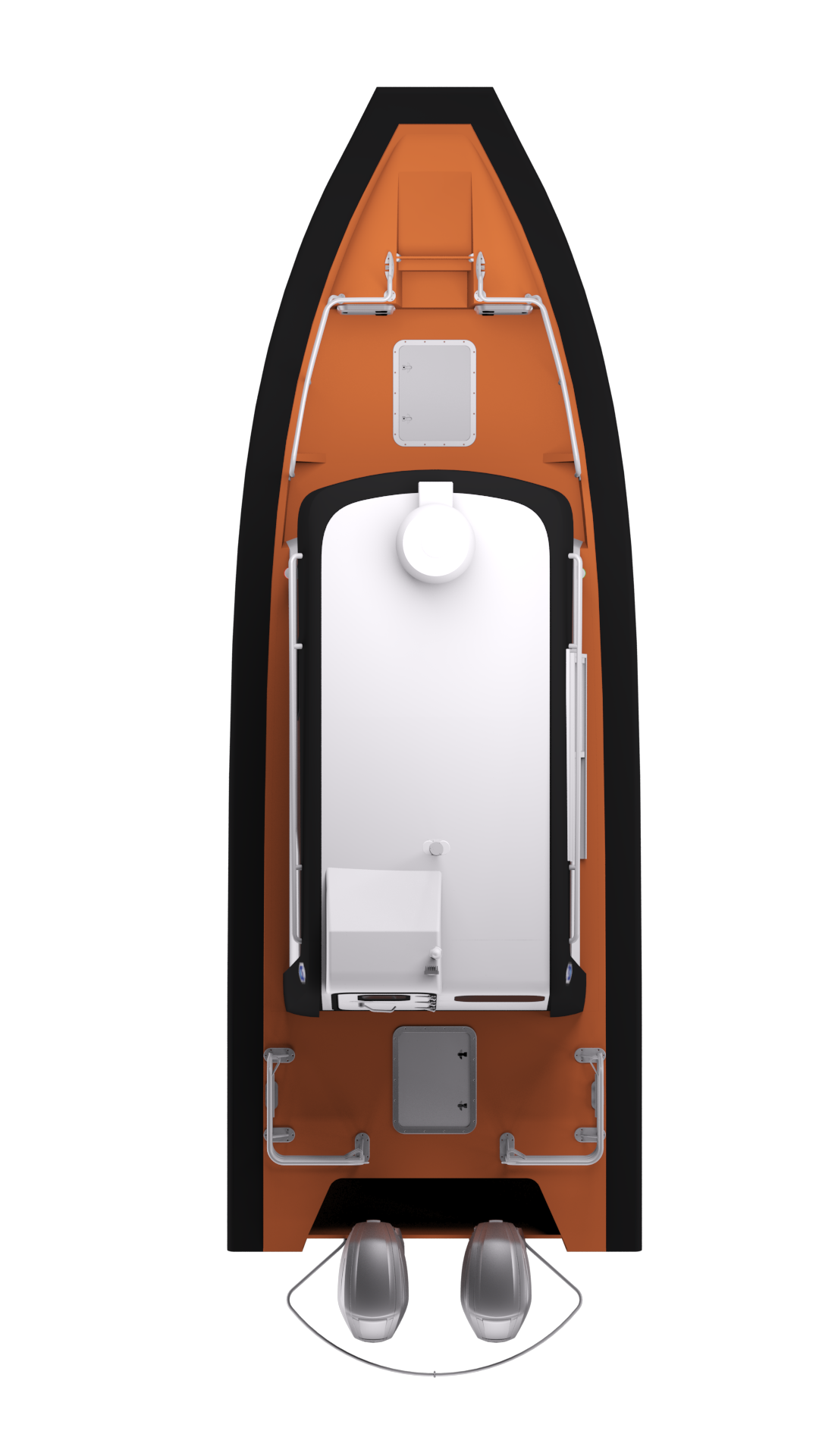 This is why the length of 8 meters was chosen. The cabin holds space for 4 people – two pilots and two crew scientists, with work spaces and table areas for all their equipment. The hull has large fenders to protect the hull against damage.
