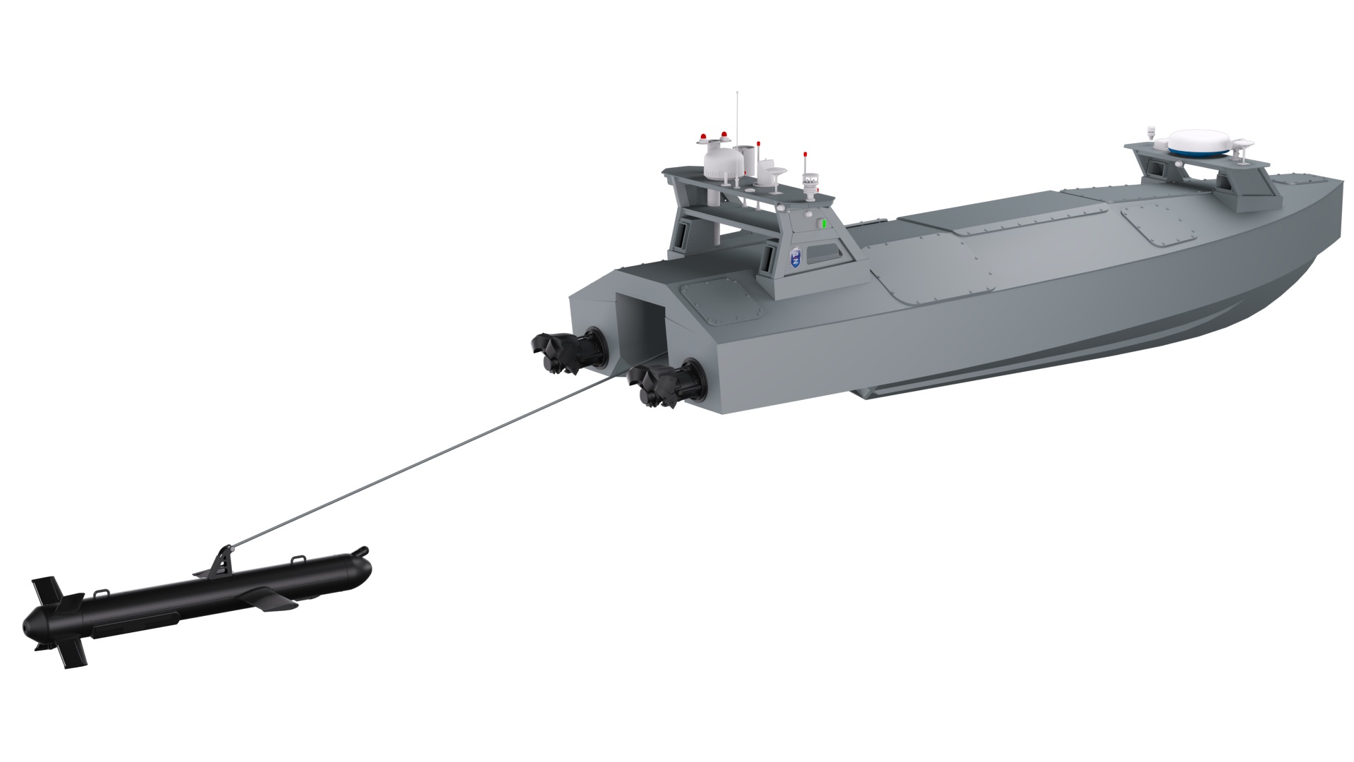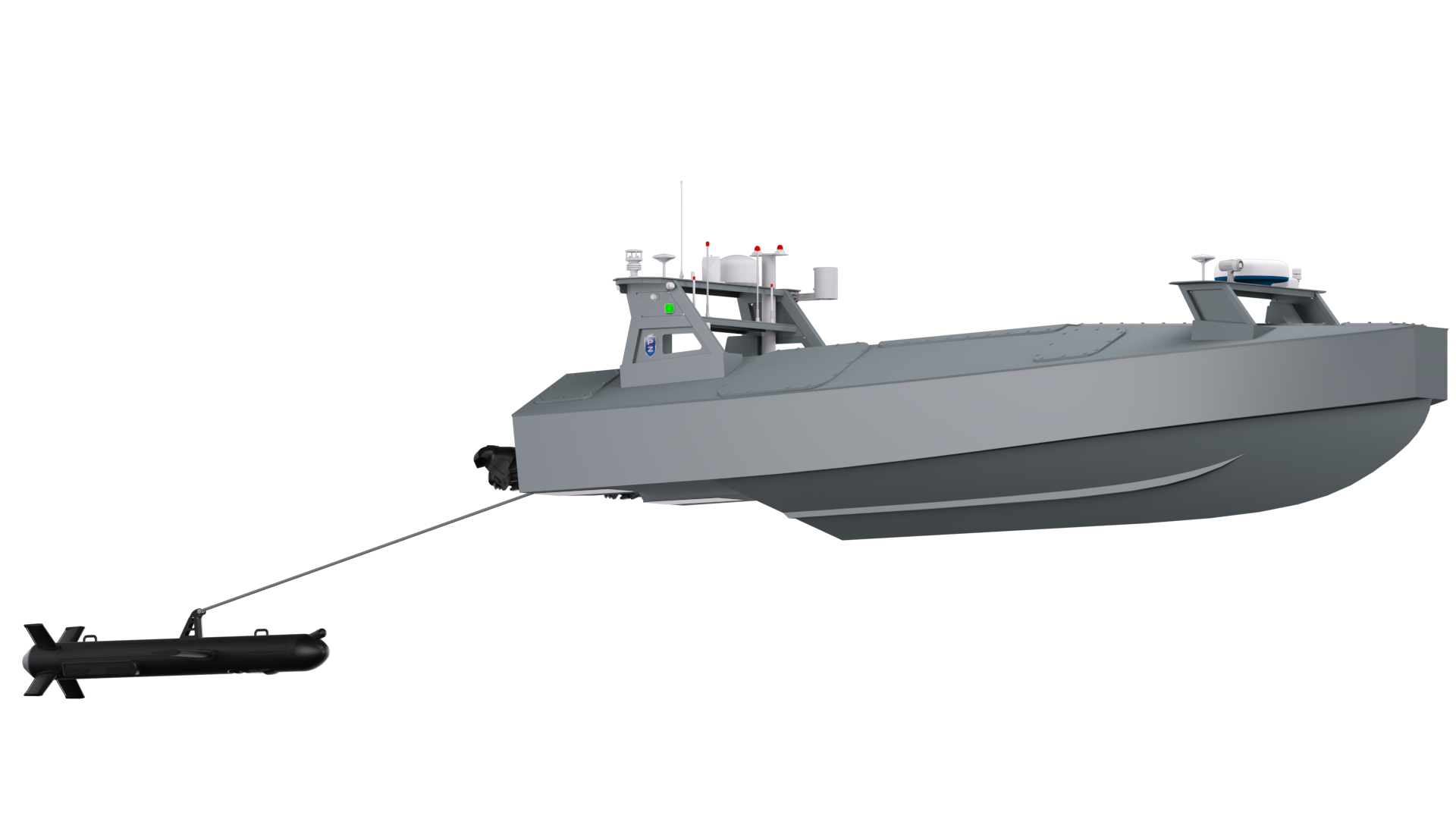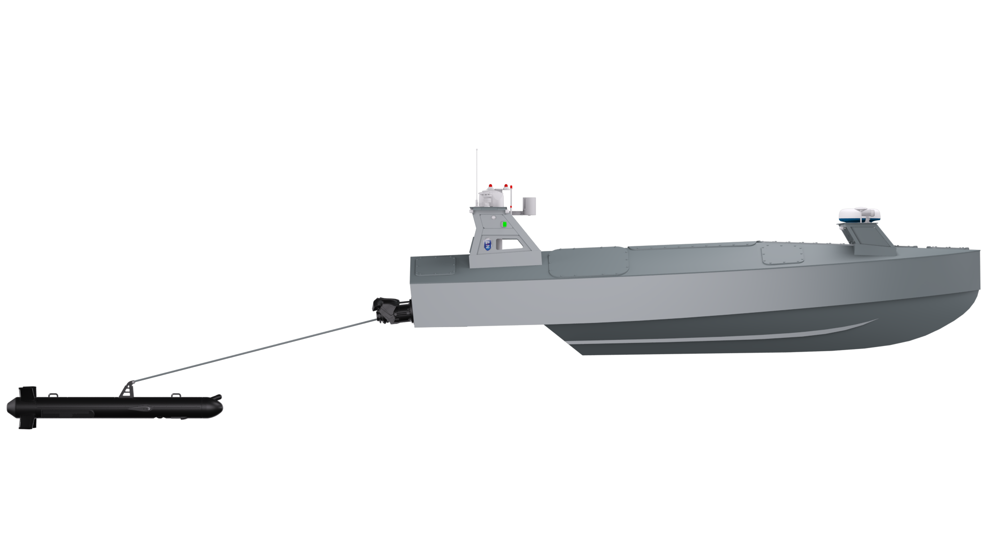 The purpose of this vessel is to act as a mothership and charging station for anti-mine drones. The client requested that it be small and difficult to see.
