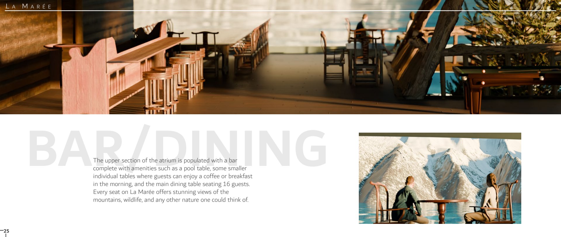waters of western Canada, La Marée smoothly blends the traditional rustic log cabin feel with a more open and airy
